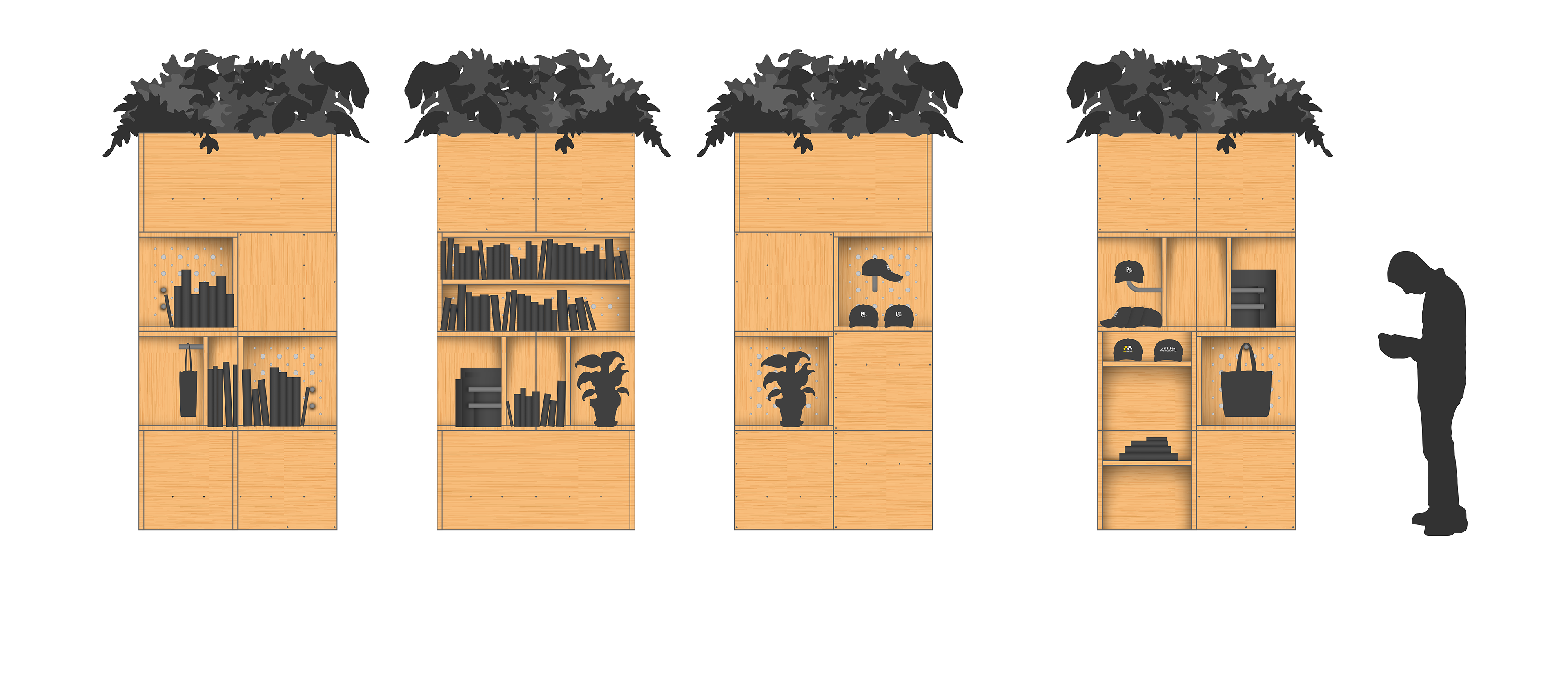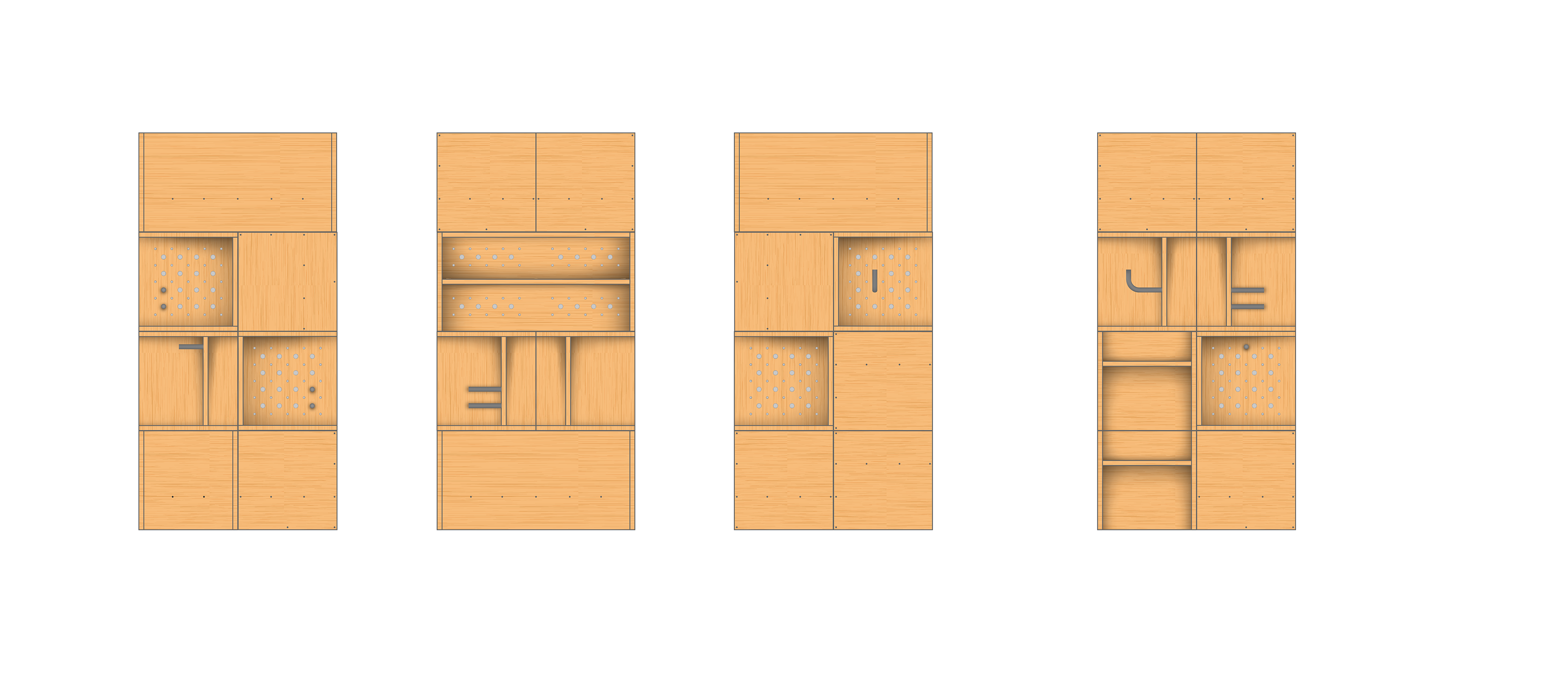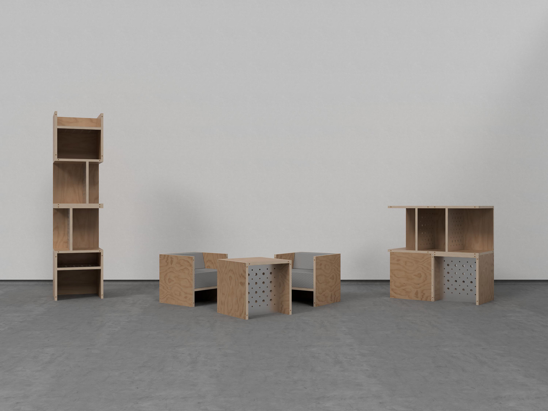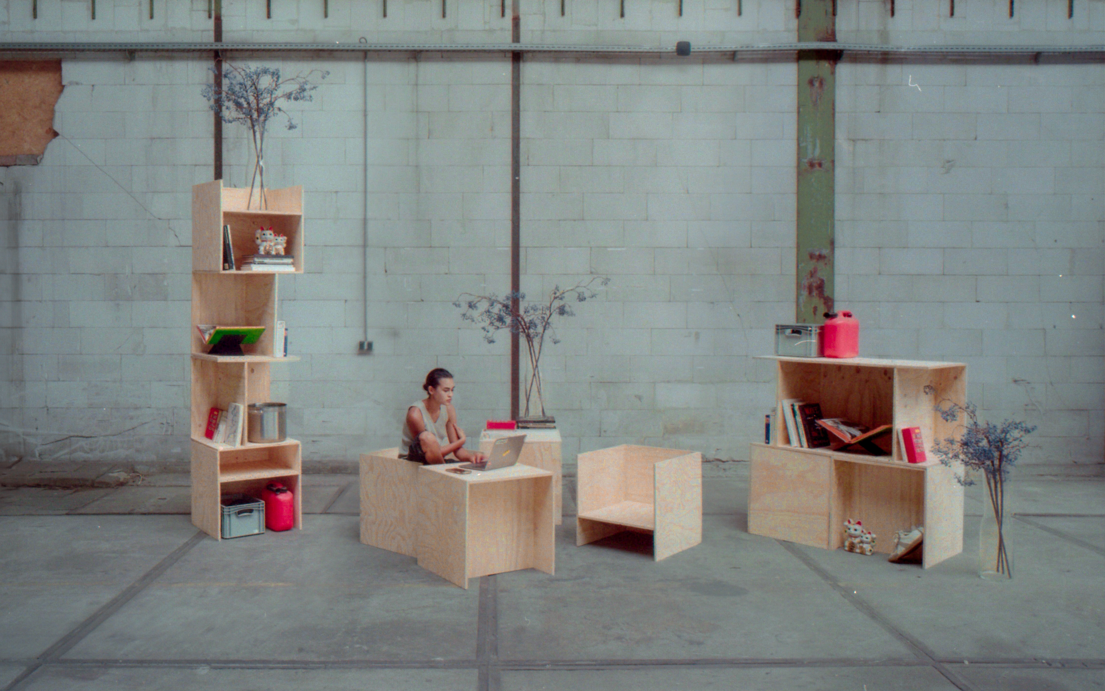 stapel is a modular interior system built from a single 1×1 unit. each element is designed with full 360° compatibility, allowing connections on all six sides. this creates a flexible system in which furniture is no longer static, but continuously reconfigurable. through stacking, rotating, and recombining, individual blocks generate new spatial and functional possibilities, shifting between seating, storage, work, and display.