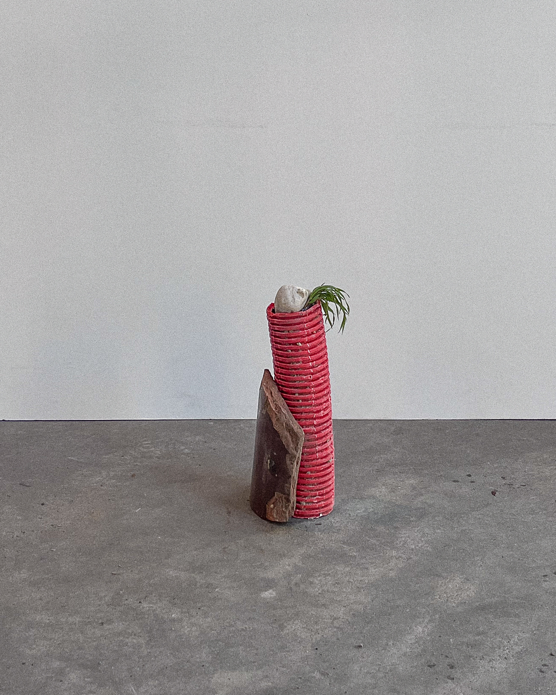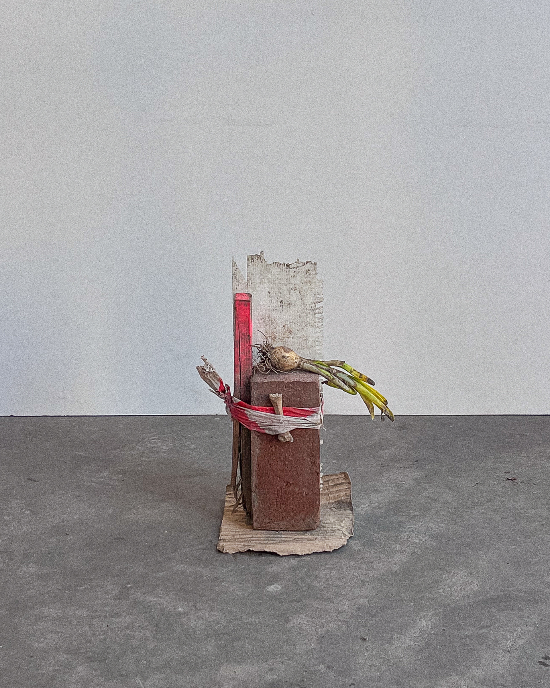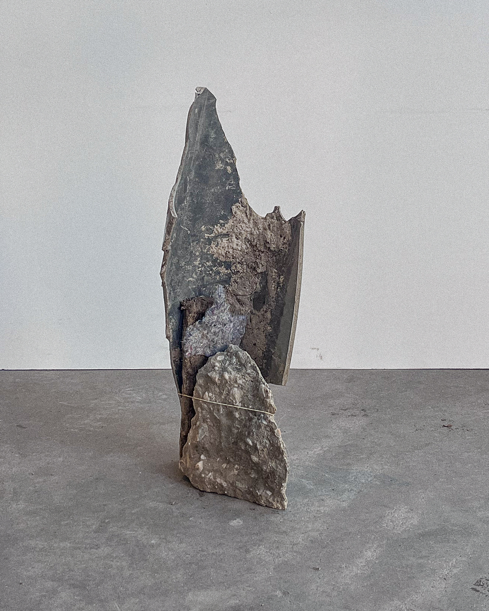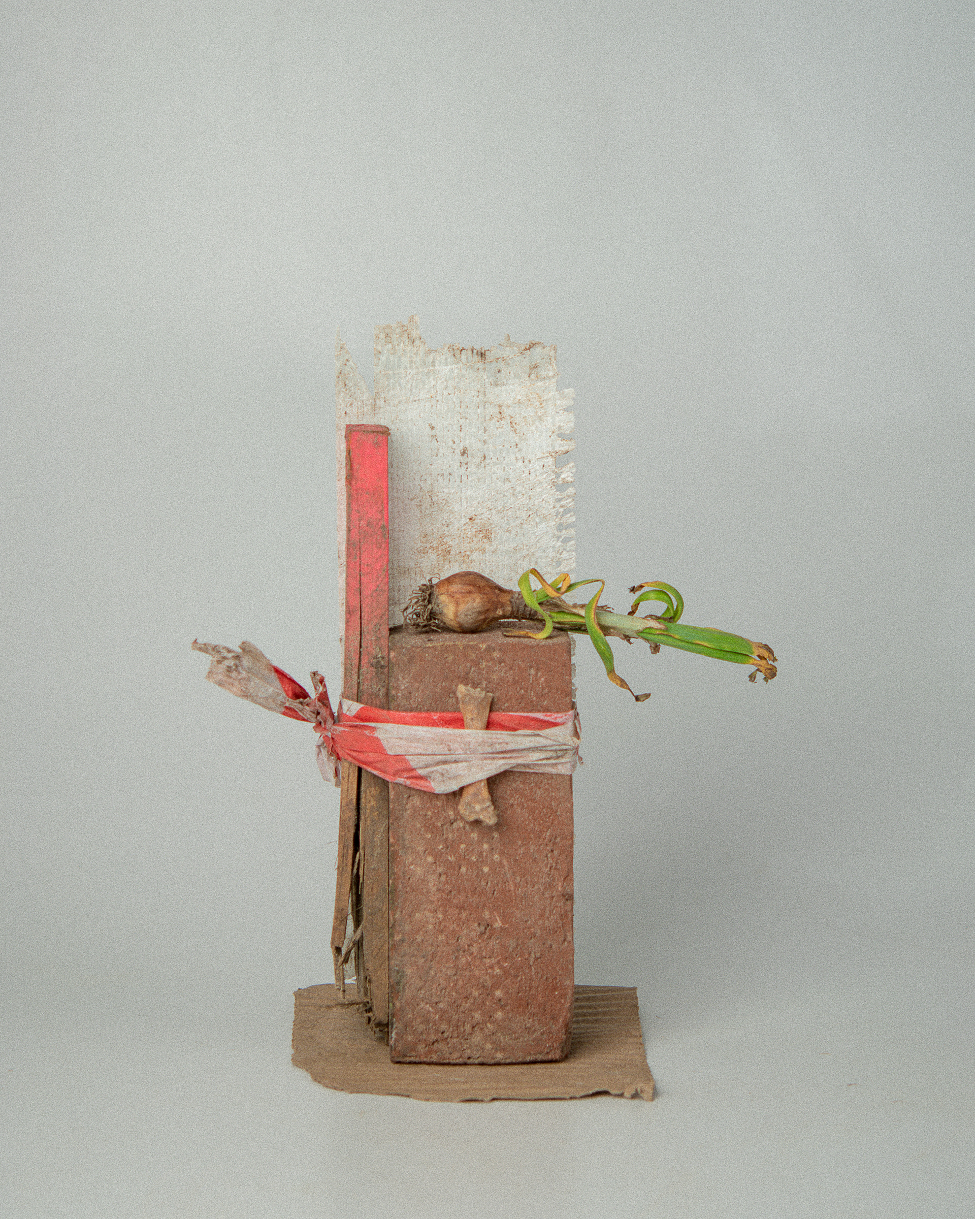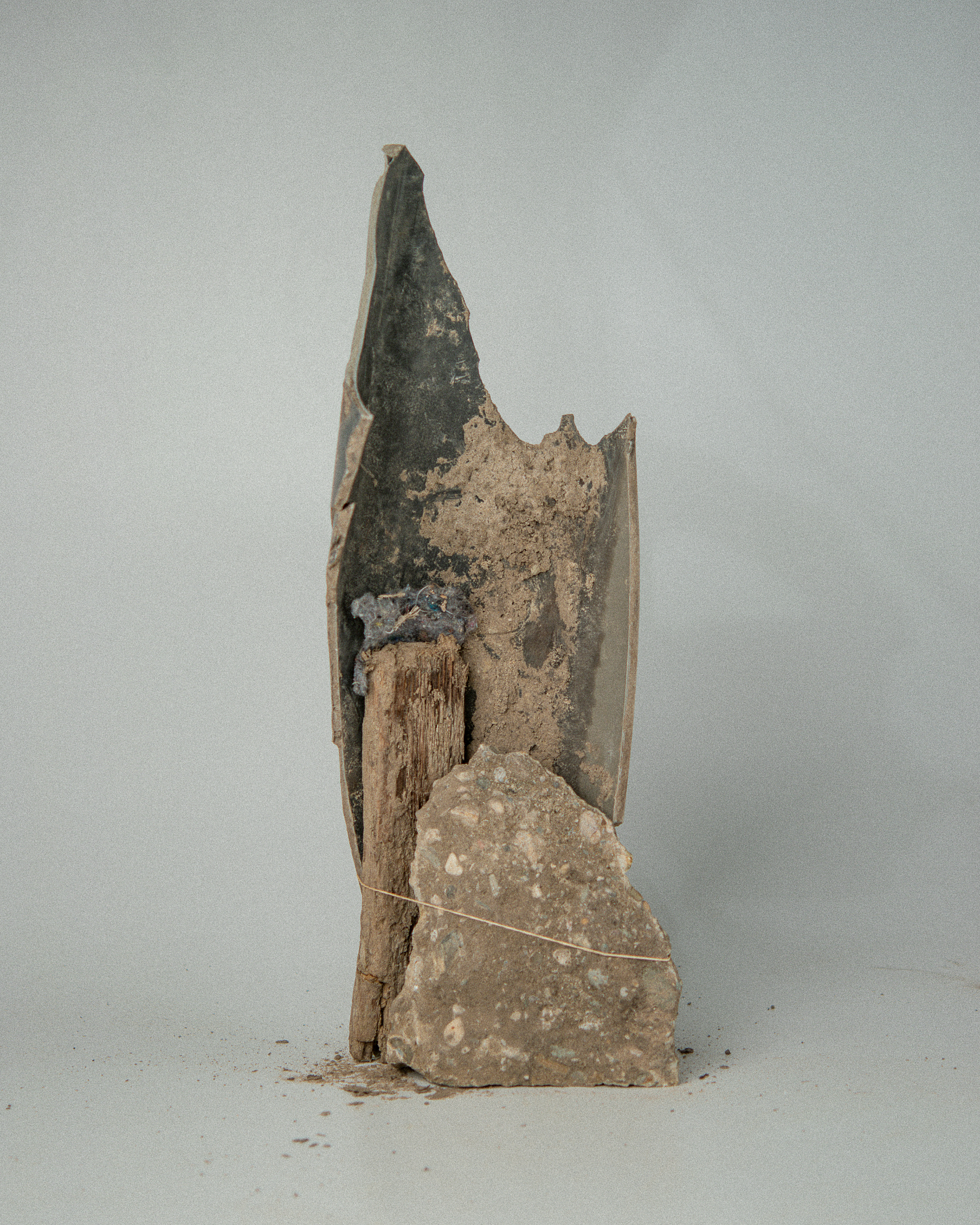 this series of sculptural collages is a material study of the construction site. using found fragments, each piece is composed through acts of balancing, binding, and leaning, allowing gravity and resistance to shape the form. the sculptures hover between the natural and the constructed, between decay and emergence. they read as temporary monuments to a landscape in transition. through recomposition, the work explores how overlooked matter can hold narrative potential. this series functions as a research practice, establishing a material language later explored in the re-compose project.
